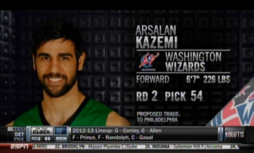 کاظمی بعد از حامد حدادی دومین ایرانی تاریخ رقابتهای NBA است. و البته اولین بازیکن ایرانی تاریخ NBA است که از طریق درفت یا همان یارکشی وارد لیگ حرفه ای بسکتبال آمریگا یا NBA شده است . این جوان سخت کوش اصفهانی به عنوان ۵۴ امین بازیکن یارکشی به ویزاردز پیوست .۲۷ ژوئن ۲۰۱۳ مصادف با ۷ تیر ۱۳۹۲ روزی خواهد بود که در تقویم بسکتبال ما به عنوان یک روز به یاد ماندنی ثبت خواهد شد.